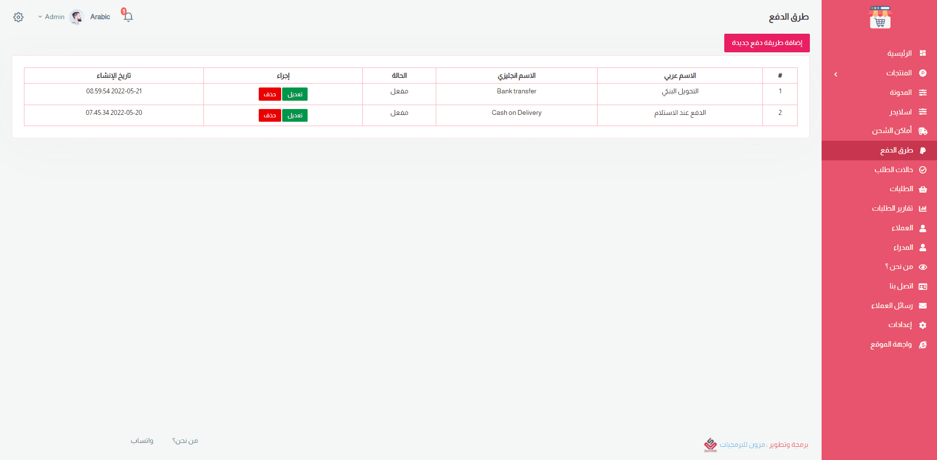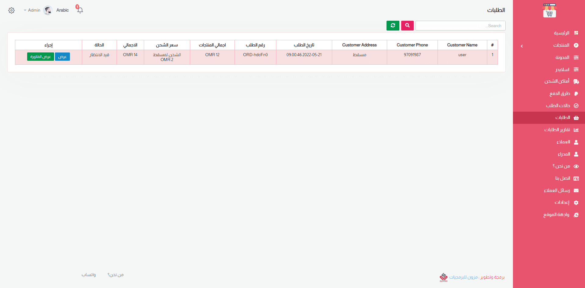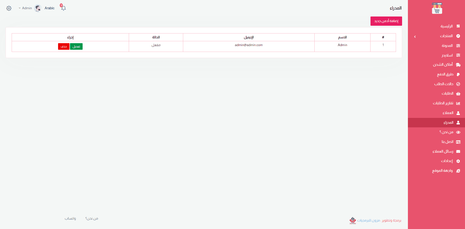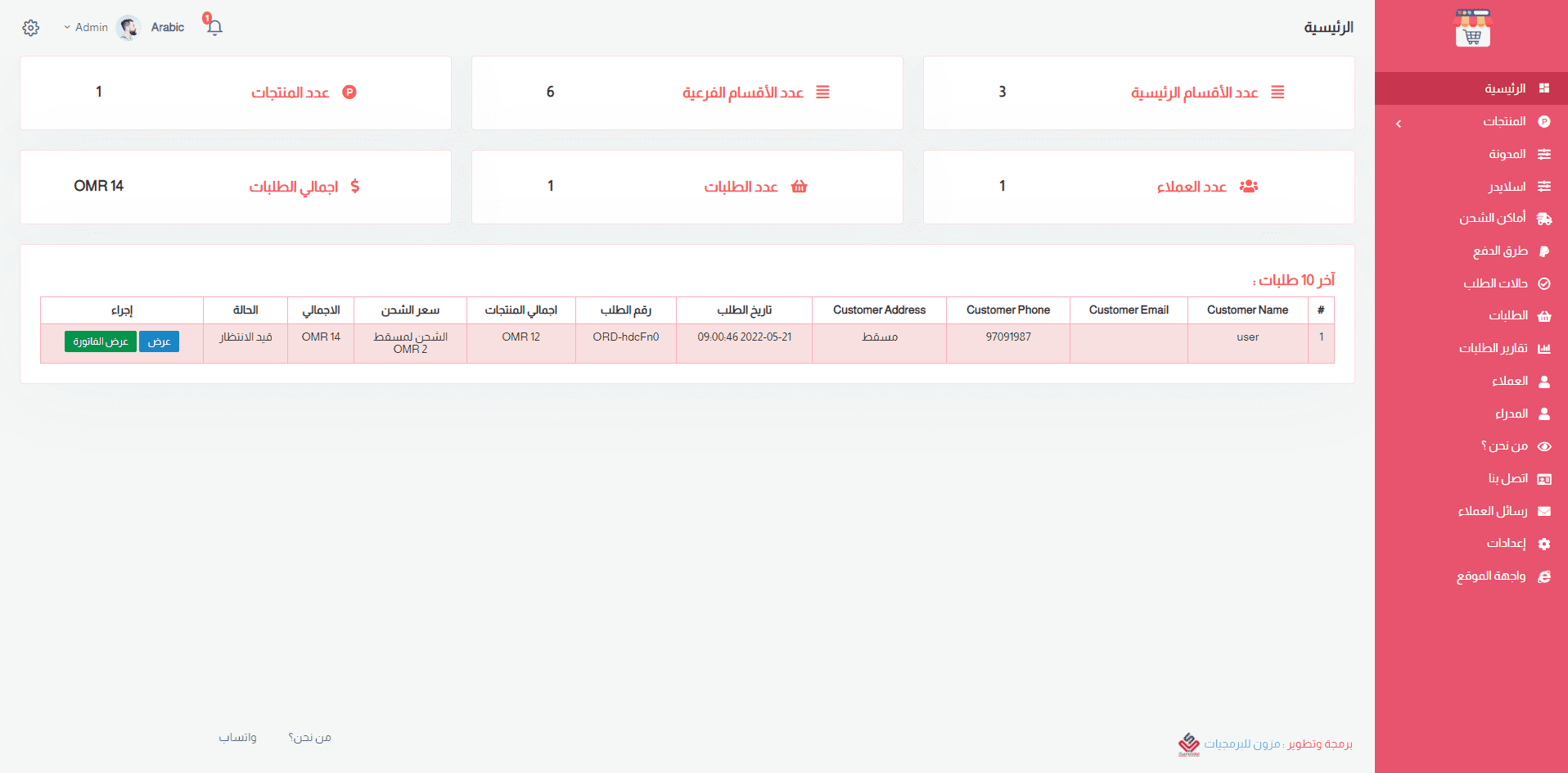 يوجد لوحة تحكم كاملة وشاملة للأدمن ومن خلالها يستطيع التحكم في كافة تفاصيل المتجر ويمكنه الاطلاع على جميع الطلبات والعملاء وكذلك التقارير