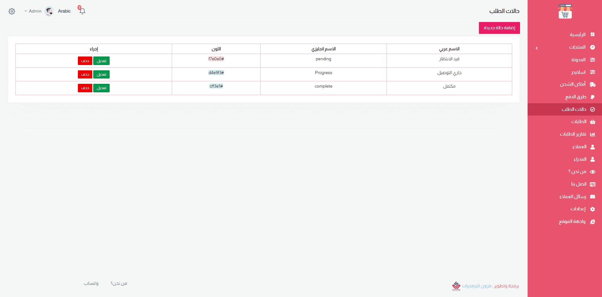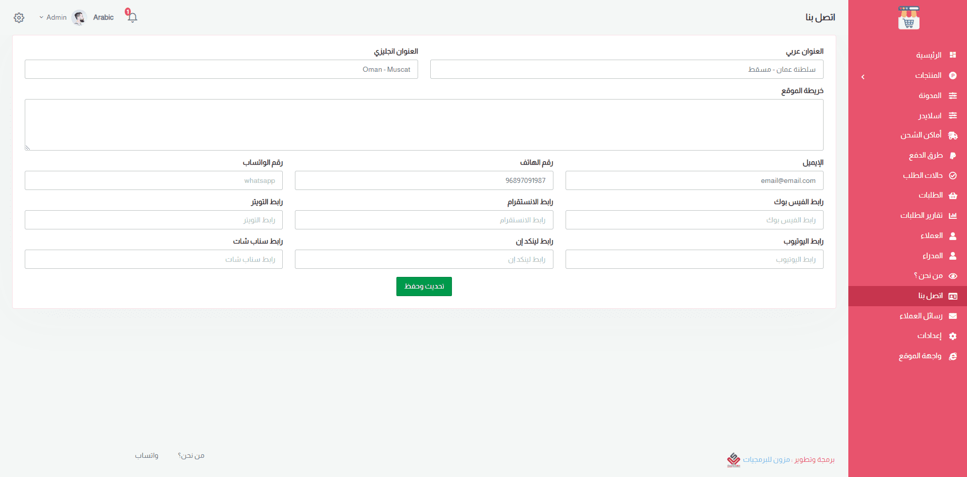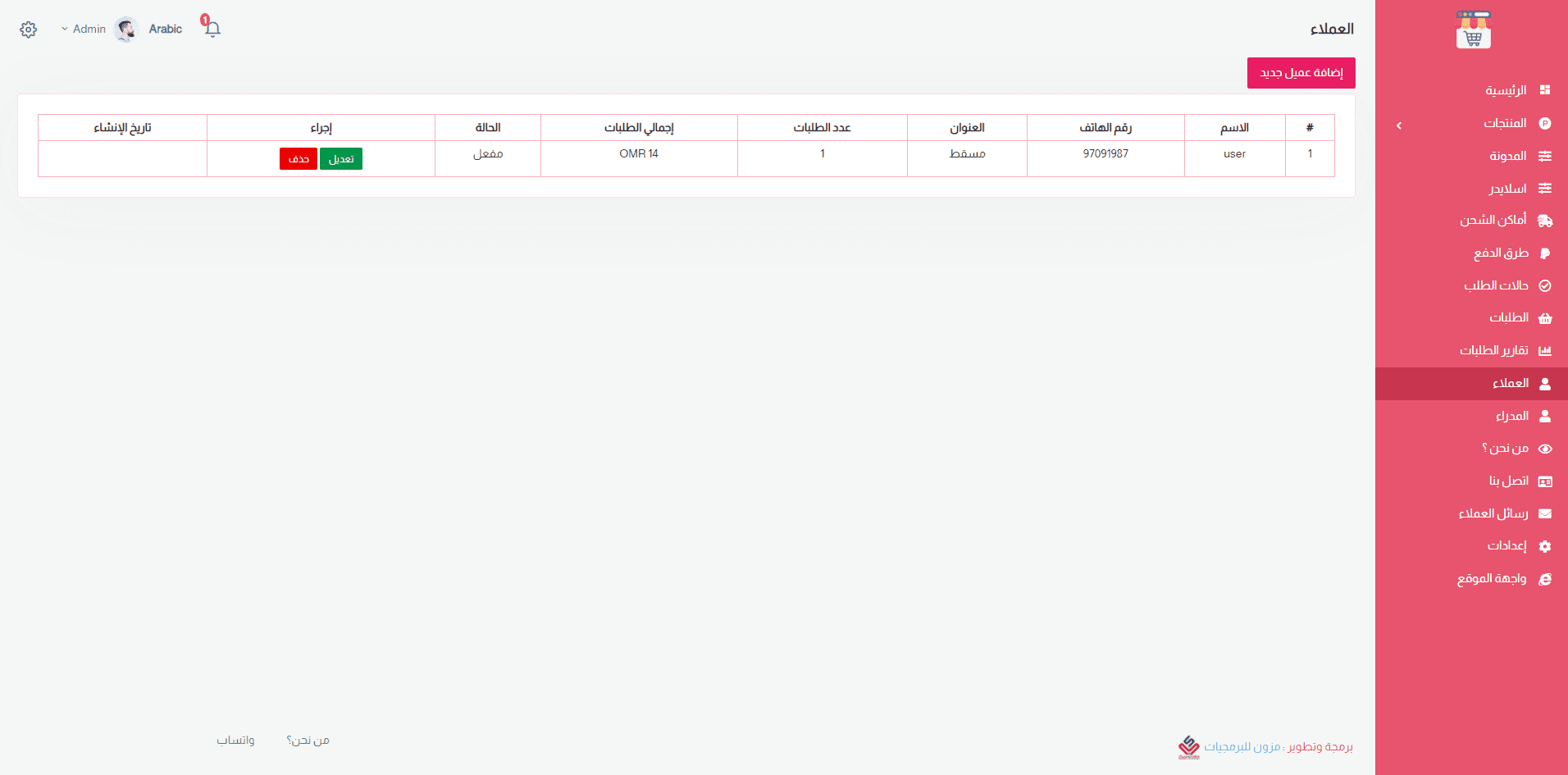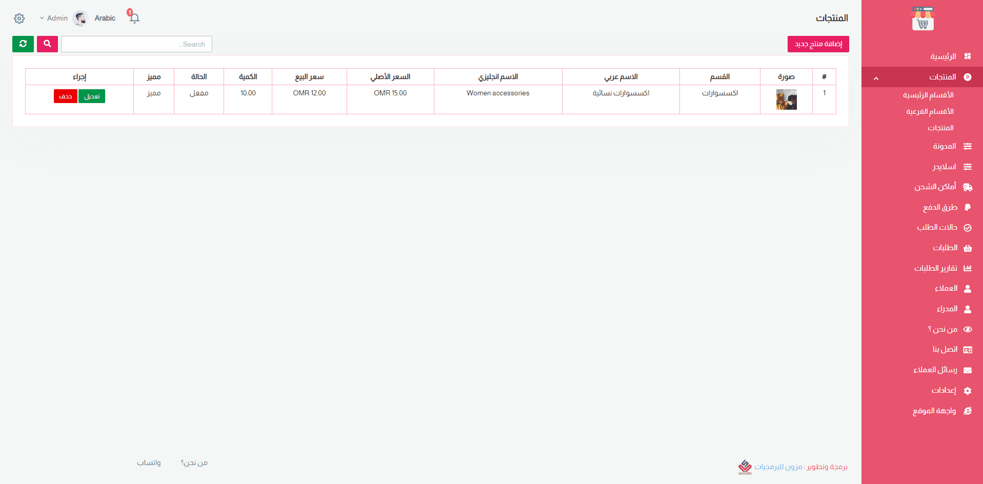 يوجد لوحة تحكم كاملة وشاملة للأدمن ومن خلالها يستطيع التحكم في كافة تفاصيل المتجر ويمكنه الاطلاع على جميع الطلبات والعملاء وكذلك التقارير
