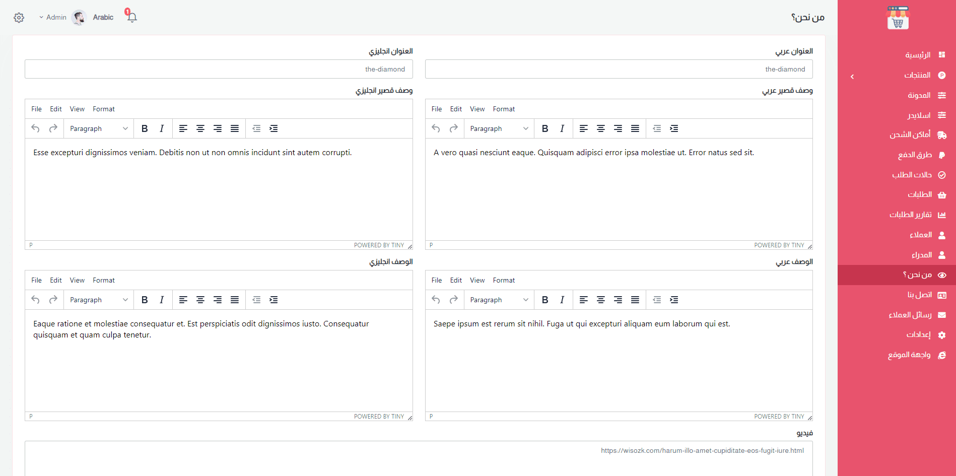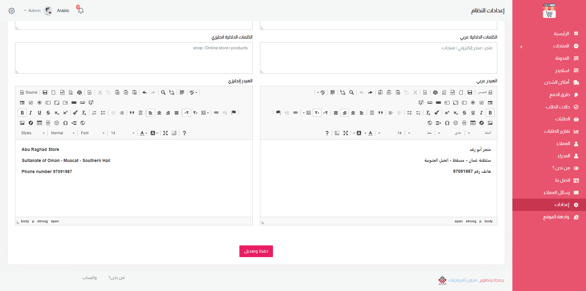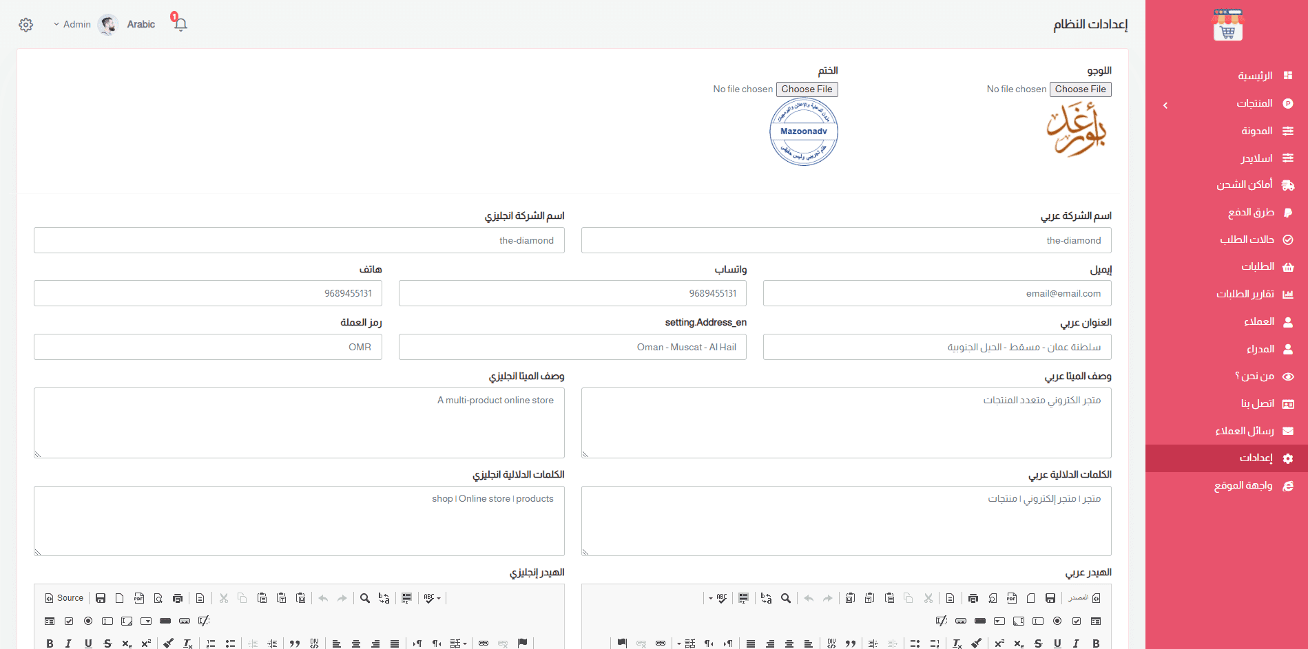 قمنا بتزويد المتجر لدينا بخاصية السيو وهو ما يفيد صاحب المتجر في أن يكون متجره له الصداره في محركات البحث - يستطيع اضافة الوصف والكلمات الدلالية في كل صفحة