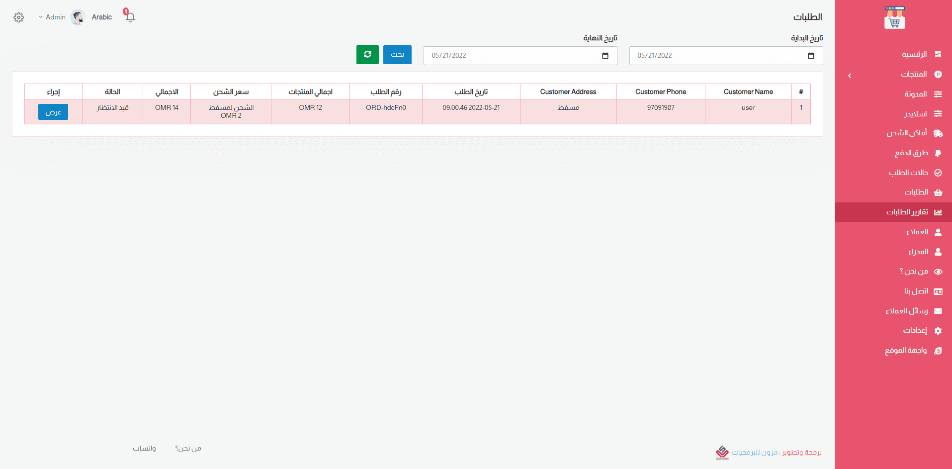 من خلال لوحة التحكم يمكن الاطلاع على التقارير الخاصة بالطلبات بين تاريخين مما يساعد في فهم طبيعة العملاء واتخاذ قرارات لمستقبل التجارة الخاص بكم